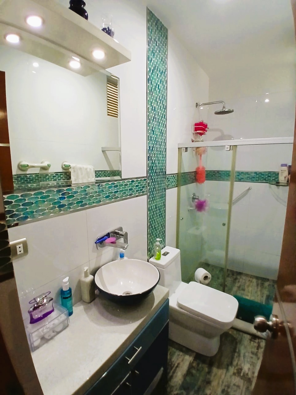 • Cocina Integrada (Kitchenette): Totalmente equipada con cocina eléctrica y a gas empotrada, horno, microondas, campana, refrigeradora de dos puertas y vajilla completa.