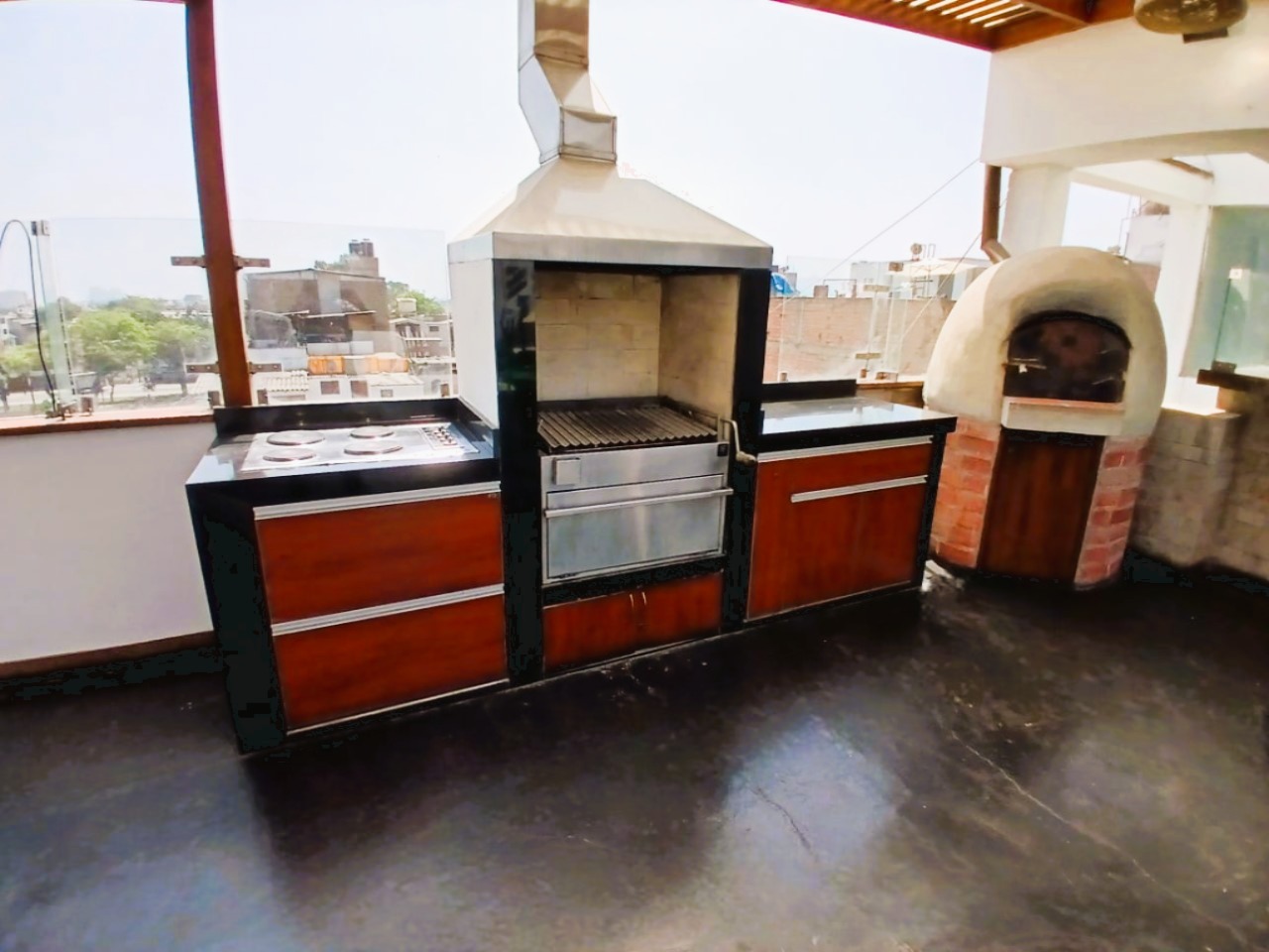 • Área de Parrillas y Gastronomía: Equipada con parrilla con mesa de cuarzo, caja china, horno de barro y cocina eléctrica.